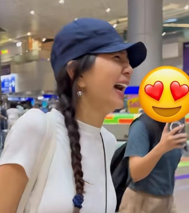 中秋节露面时,她一边和粉丝互动一边走,脸上没化妆依旧很自信,和粉丝说到兴起处,表情抽象到直接失态。