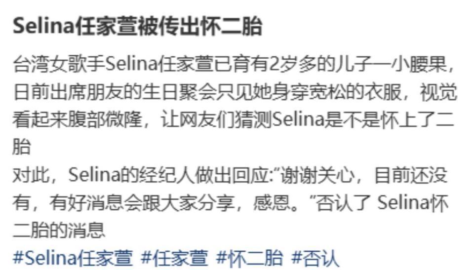 但她的经纪人很快就出来辟谣,辟谣时还留了余地,用了“目前还没”四个字,兴许还有继续拼二胎的心思。