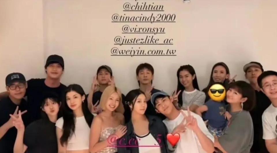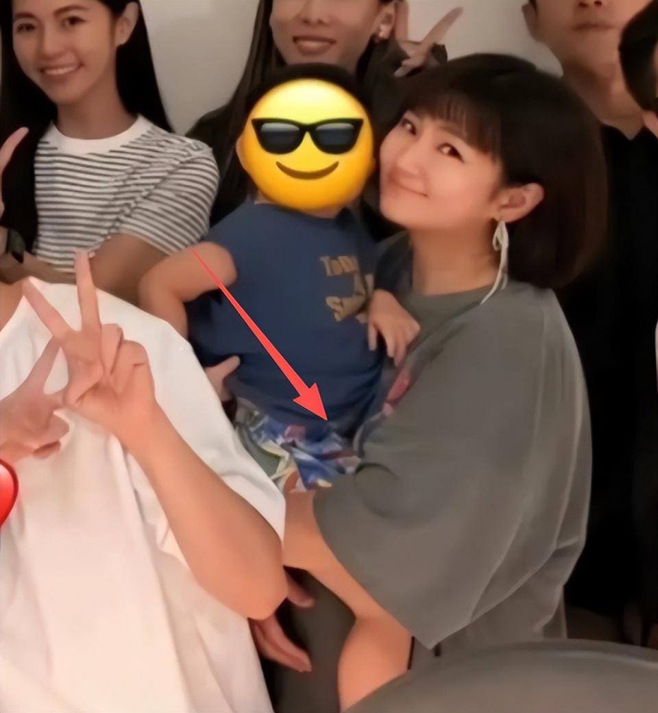 她和男友、儿子一起参加了朋友生日会,拍了同框合照。