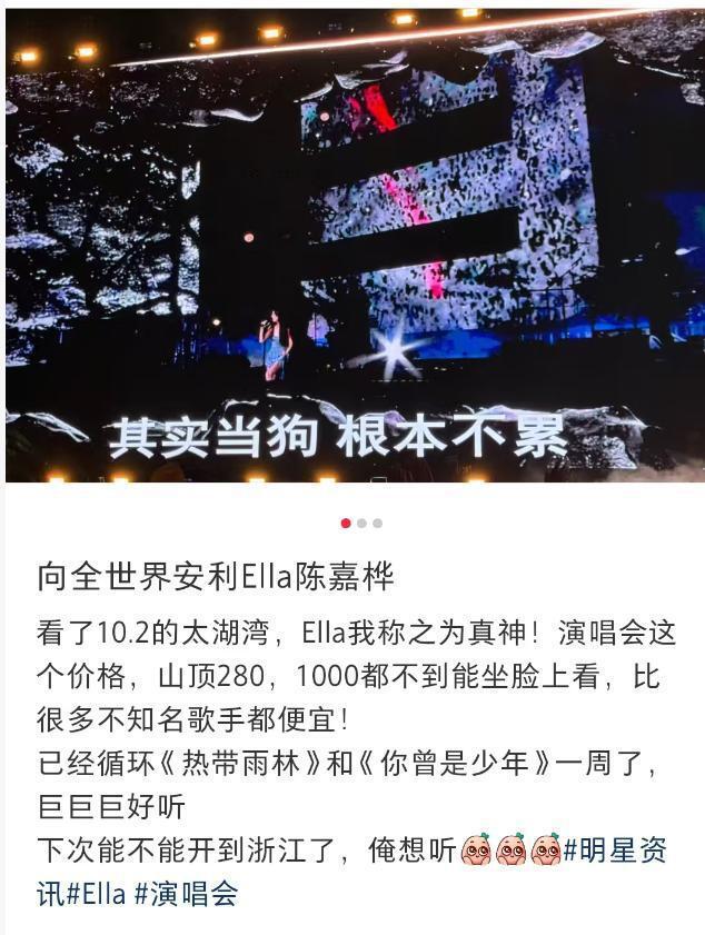 她 11 月份在内地还有一场演唱会,演唱会票价还挺亲民,最低看台票跟很多二线歌手一个价。