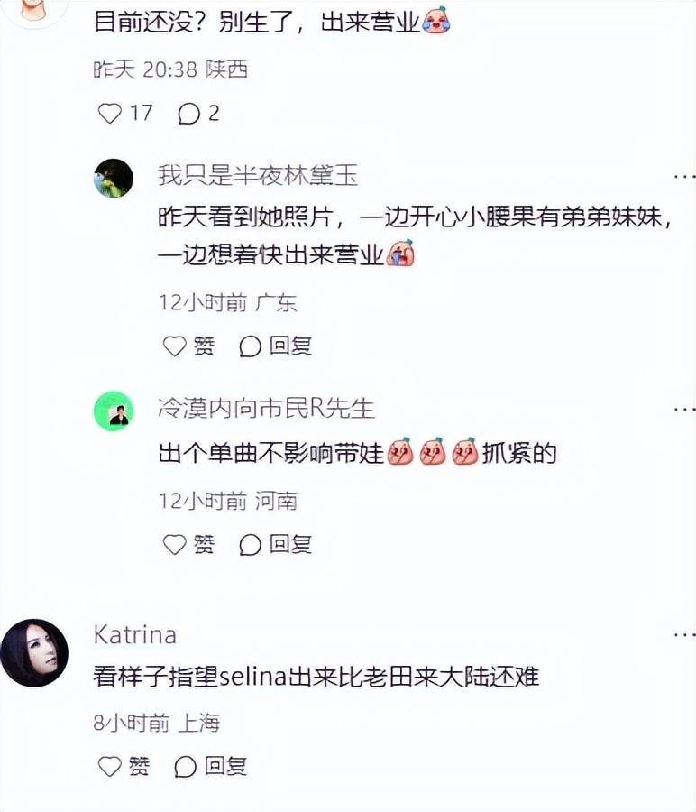 既然没有真怀二胎,粉丝也不免呼吁她快点出山搞事业。