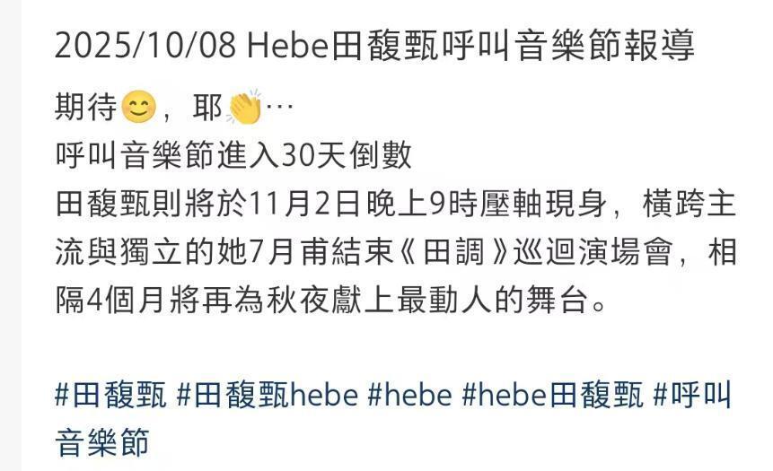 Hebe7 月结束了巡回演唱会,休整四个月后又要上音乐节了, 还是压轴嘉宾,咖位不小。